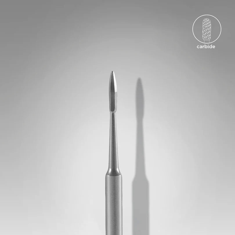 Een uniek nagel frees bitje met 6 snijkanten dat aan het uiteinde van het werkgedeelte onder een zachte hoek aansluit.