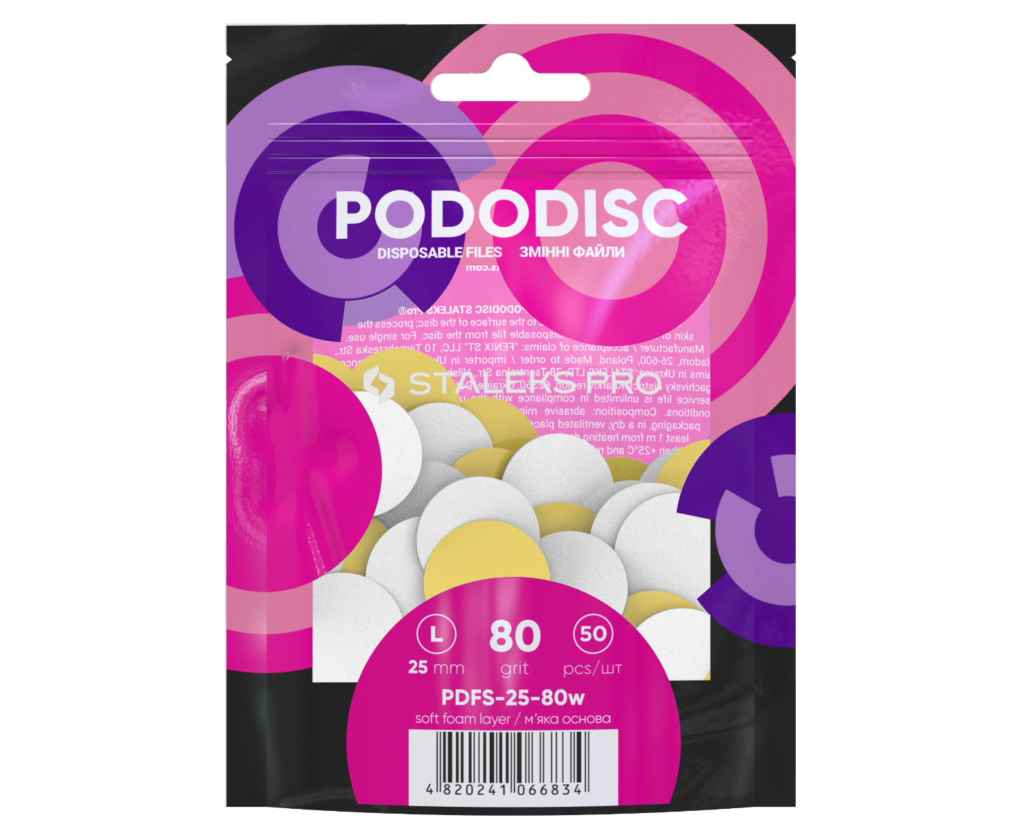 De betrouwbare kleeflaag garandeert een veilige bevestiging tijdens de procedure. De vijlen mogen niet in water worden geweekt – voorbehandeling van de voeten met keratolytische of verzachtende oliën of andere middelen heeft geen invloed op de eigenschappen van de vijl.